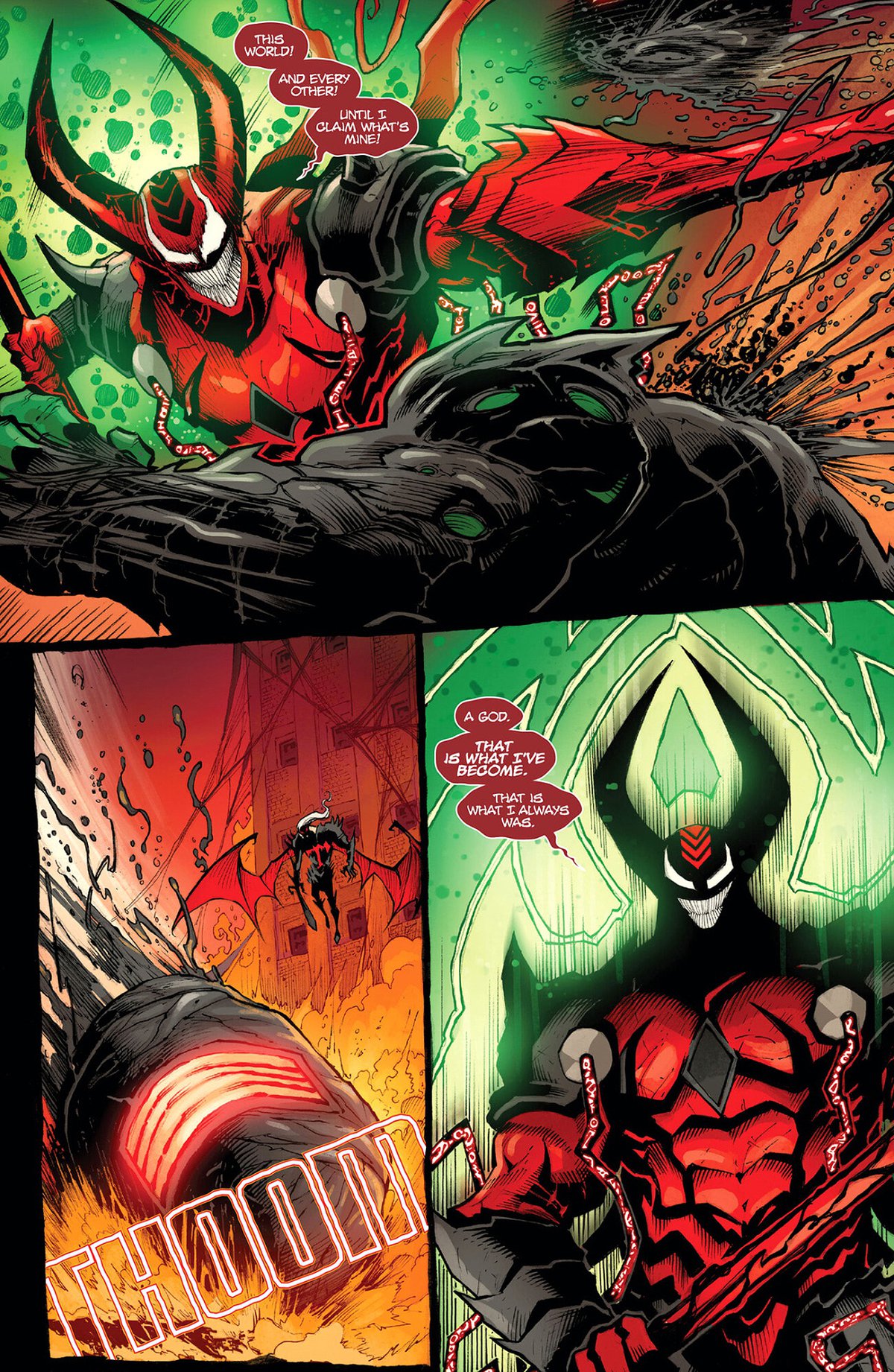 ComicBook.com: Возможно, это из разряда спойлеров, но Вы упомянули два вопроса, заданных в этой серии: что представляет собой Карнаж как бог и что происходит после того, как вызов для него исчезнет? Можете ли Вы подсказать или тизернуть, как могут выглядеть ответы, когда он начнет находить ответы на эти вопросы?