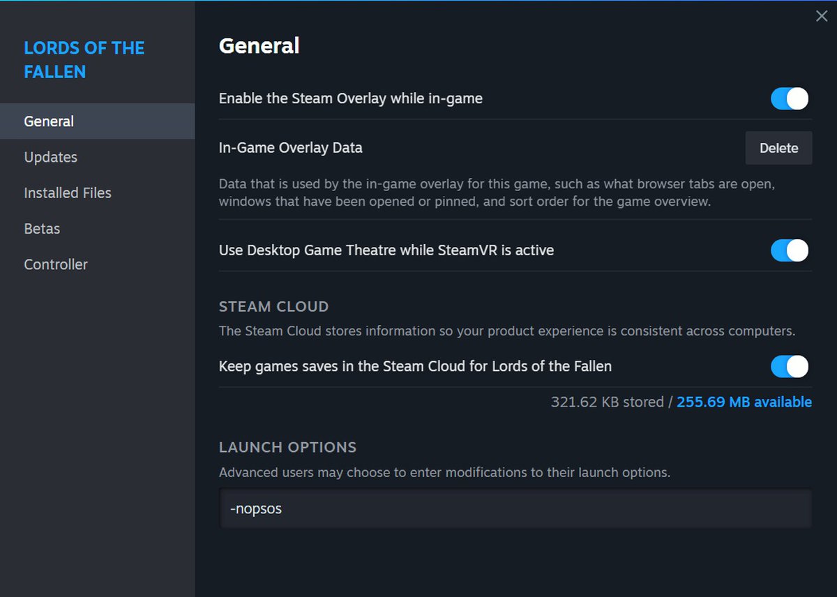 Если после установки патча Lords of the Fallen будет подлагивать при входе в новую область, разработчики рекомендуют добавить значение -nopsos к параметрам запуска игры. Это можно сделать в свойствах проекта в Steam.