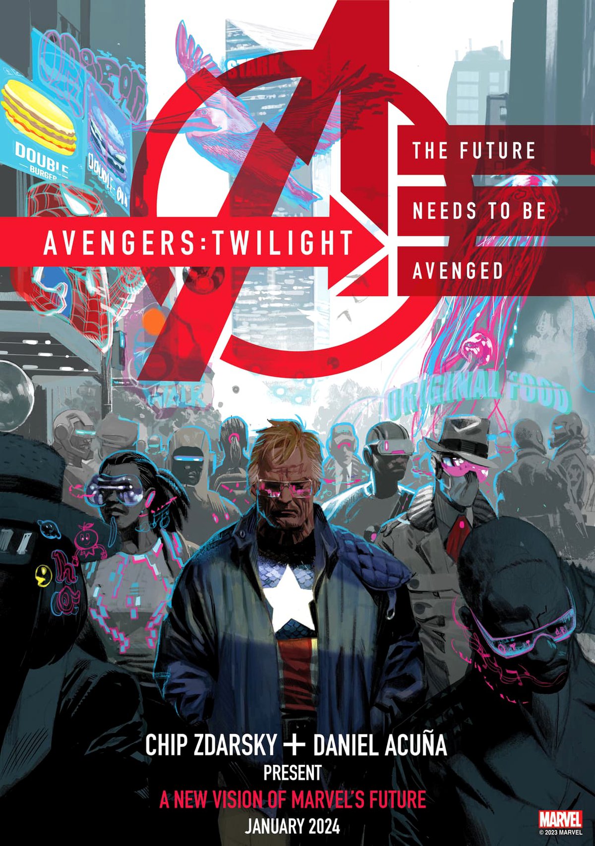 Отдельно анонсирована была лимитка из шести номеров Avengers Twilight. В США антиутопия, свободы нет, Капитана Америки нет, но есть Стив Роджерс. Многие друзья Стива уже мертвы, но жива ли его мечта о лучшей Америке? Как собрать Мстителей в мире, которому они не нужны?