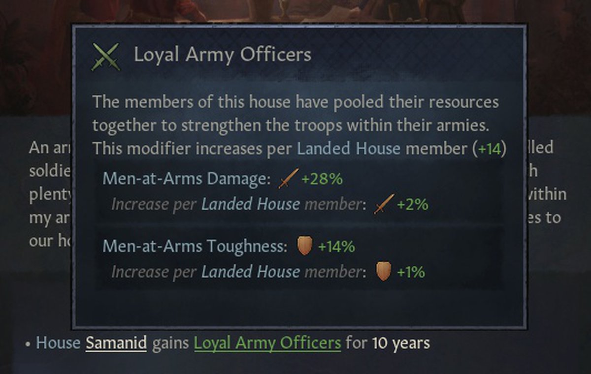 Кроме того, в разных положениях есть особые решения. Например, они могут дать бонусы армии.