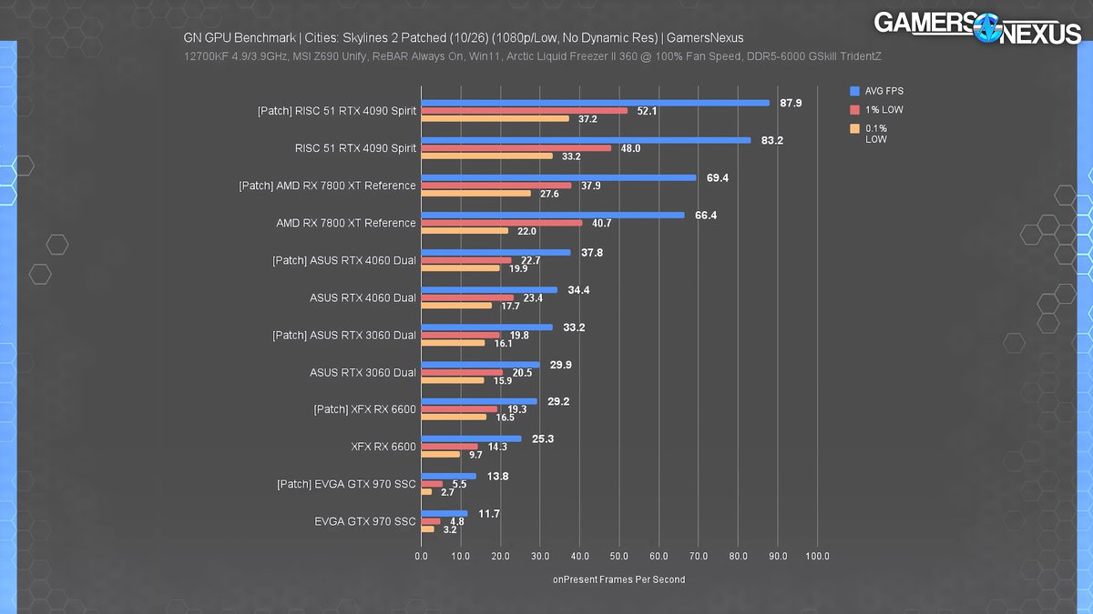 Сити-менеджер Cities Skylines 2 активно критикуют за плохую оптимизацию, разработчики успели выпустить один патч, немного улучшающий работу игры. Чтобы понять, как дела у Cities Skylines 2, команда Gamers Nexus протестировала игру на десятках видеокарт.