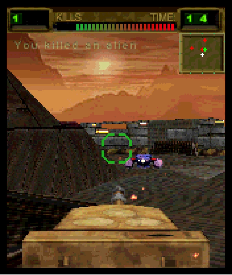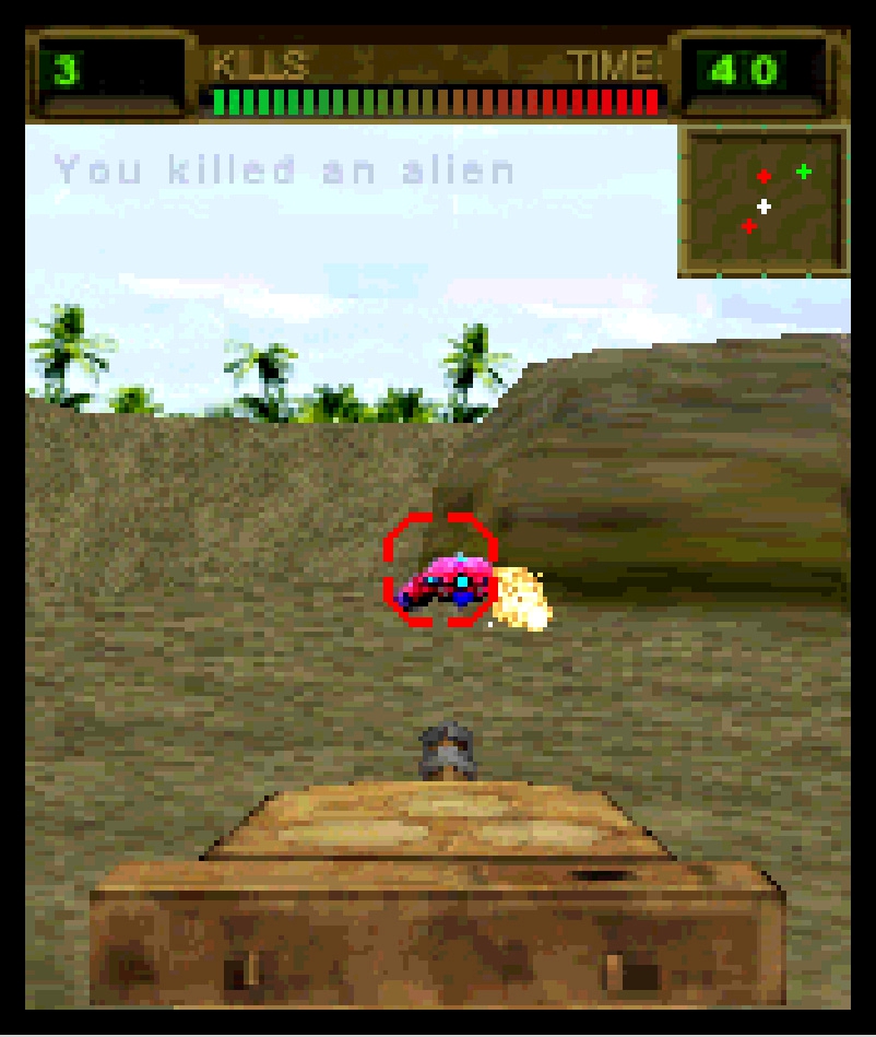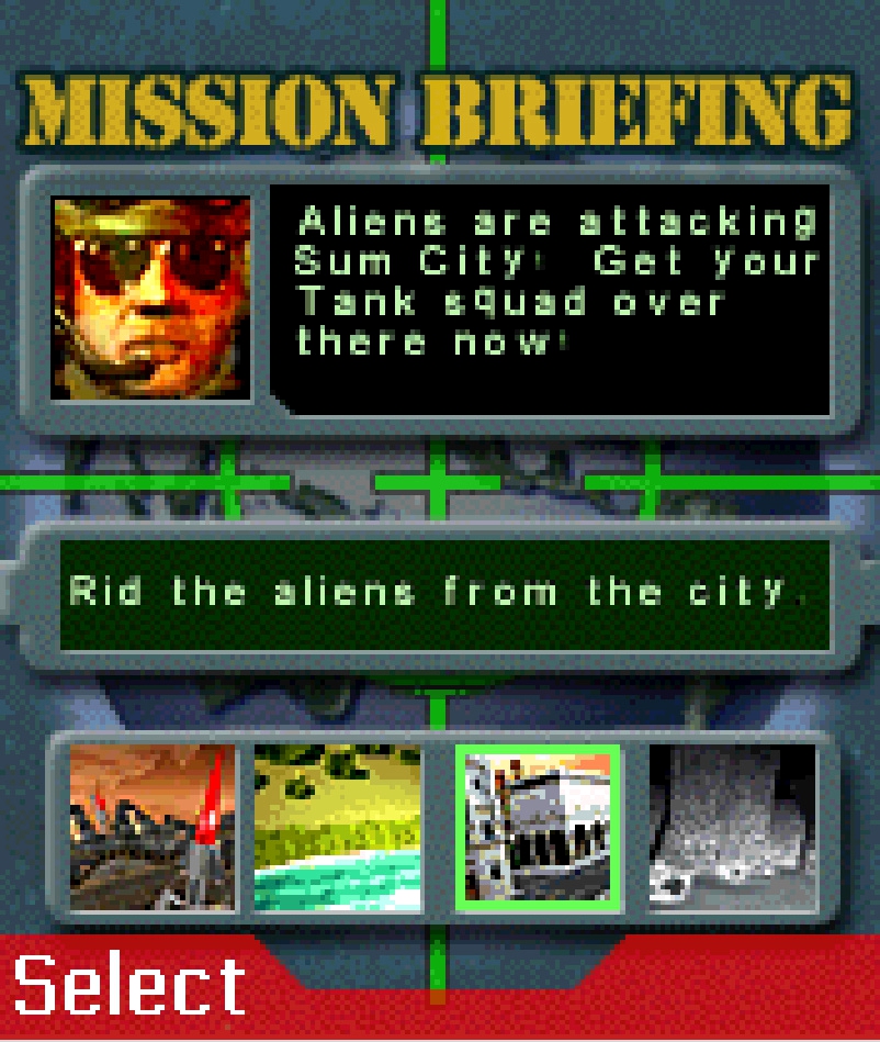 Игра представляла собой набор мини-миссий, где мы играя за команду людей или пришельцев уничтожали армию противника. Всего в игре четыре уровня: Mufthasa Base, Chinazon Beach, SumCity и Alien Cave. В конце каждого уровня нас ожидает босс. Игра не сложная и проходится достаточно быстро, но есть шанс на этапе SumCity застрять внутри дома. По ходу игры мы будем собирать улучшения для танка, который выбрали перед началом игры. Игра полностью проходима, практически готова к выходу, за исключением некоторых не проработок.
