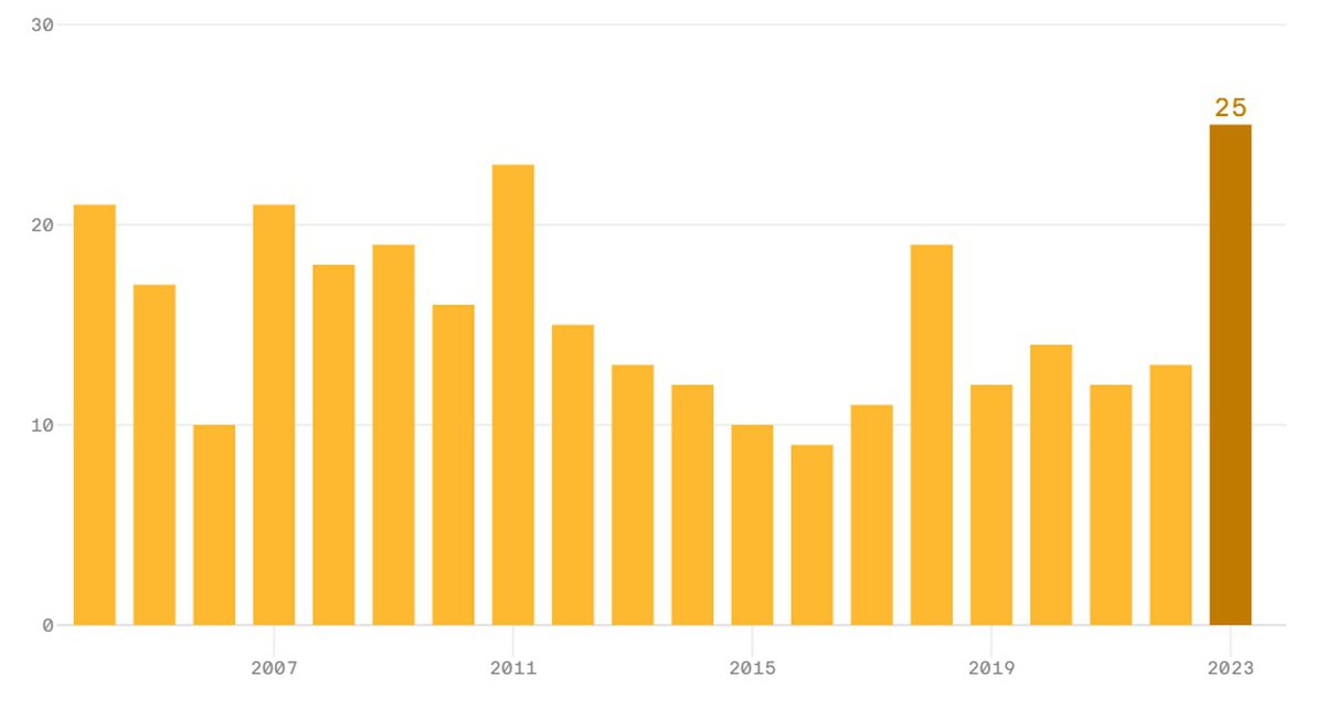 В среднем ежегодно выходит примерно вдвое меньше игр с такими рейтингами. Вплотную к результату 2023 года приблизился 2011 год: тогда вышло чуть больше 20 игр с рейтингом от 90 и выше на Metacritic.