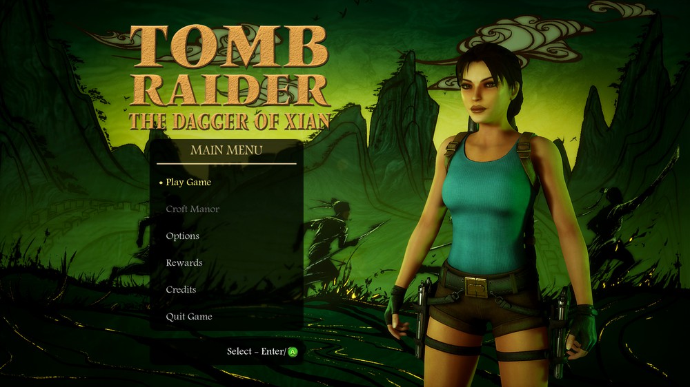 Запустив демо-версию нас встречает Лара, стоящая на титульном экране и меню, схожее с Tomb Raider: Legend и Anniversary. Весь стиль парящих моделек из оригинала был утрачен, но, потеря не потеря на деле, так как это всего-лишь меню. Да и на мой вкус смотреть на Лару приятнее и стилистически она выполнена красиво.