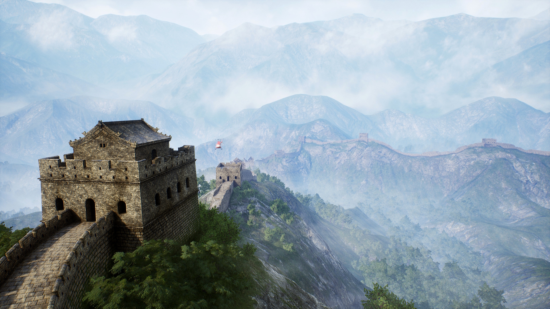 Открыв дверь и выйдя на Китайскую стену снова, смотришь на графику и она впечатляет и огорчает одновременно. Дело в том, что все прозрачные частицы сделаны по аналогии со всеми современными играми и зависят от качества сглаживания... Но даже при максимальных настройках графики и максимальном сглаживании видны точки на этих самых прозрачных объектах. Плюсом ко всему, дальний вид двоится из-за не отключаемого эффекта. В целом, не страшно, игра всё-равно выглядит намного лучше всех предыдущих частей, исключая современную трилогию.