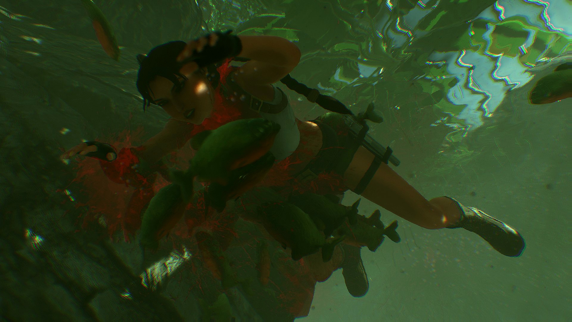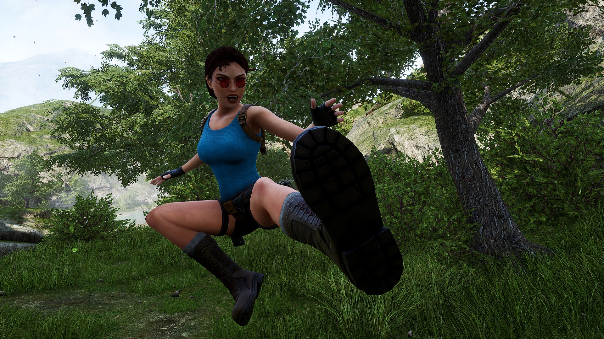 Помимо ландшафта, Nicobass реализовал систему пота, отсутствующую вообще во всех играх серии Tomb Raider. Проще говоря, когда Лара бежит или часто прыгает – на её теле появляется пот, из-за которого одежда намокает. Выглядит очень здорово и реалистично.