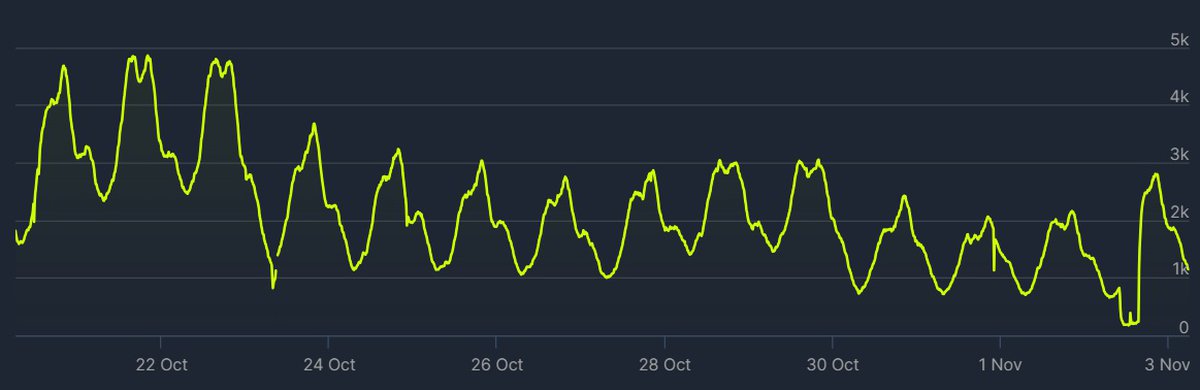 Согласно данным SteamDB, релиз обновления 1.0.1 пока не очень сильно повлиял на онлайн в Payday 3. Вечером 2 ноября в Steam-версии игры одновременно находилось около 2.8 тысяч человек — почти в 30 раз меньше, чем на релизе.