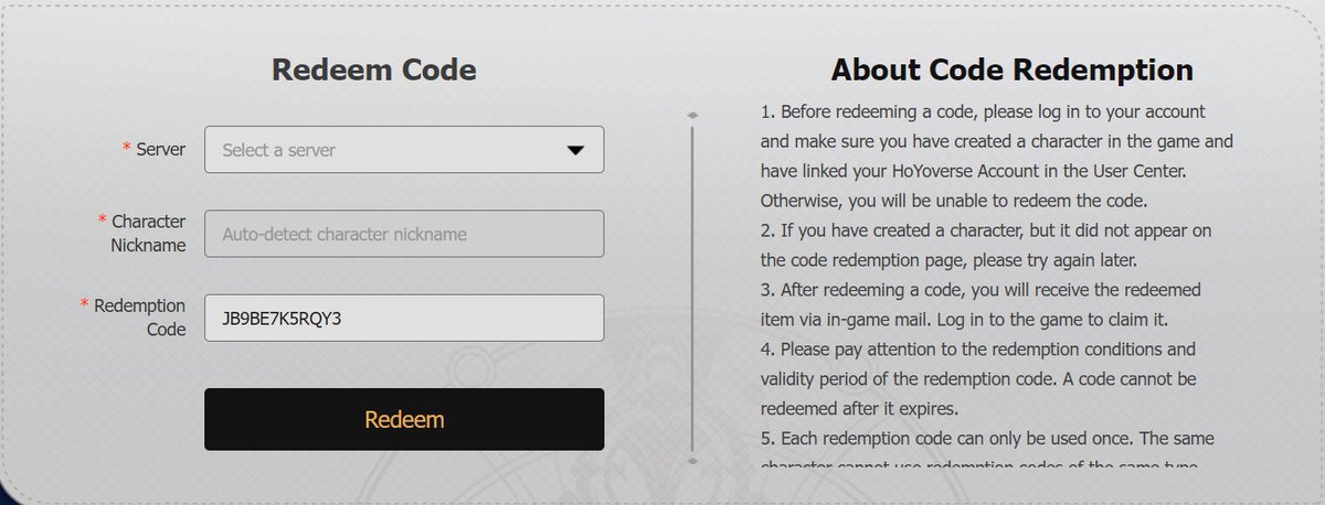 Второй вариант: активировать промокод через специальный раздел на сайте разработчиков Honkai Star Rail. Этот вариант лучше всего подходит для игроков на консолях.
