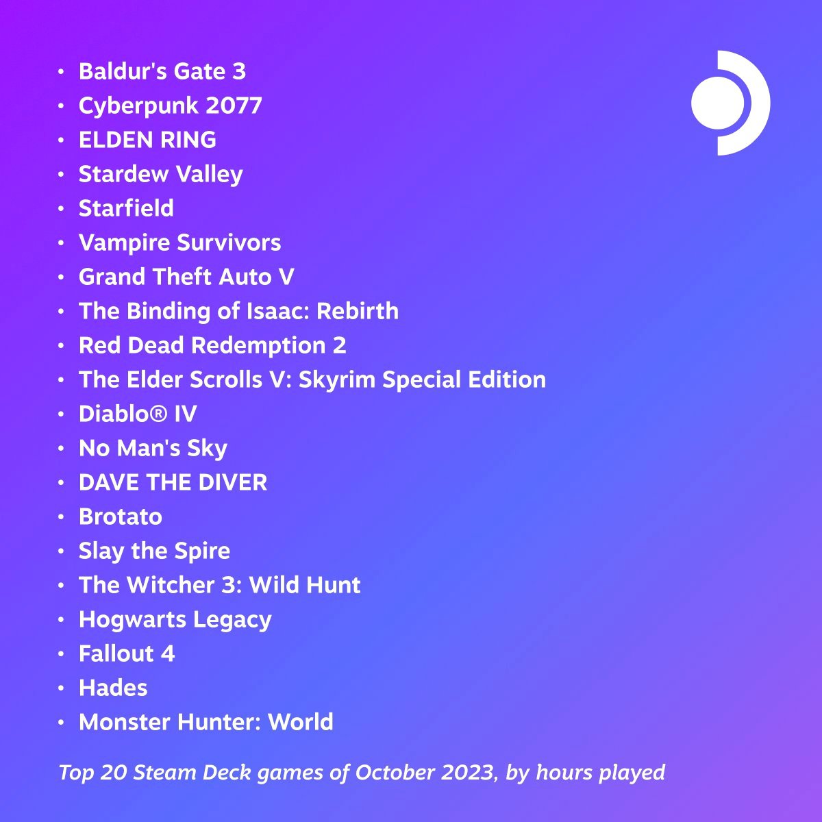 Baldur's Gate 3 — снова самая популярная игра на Steam Deck, Starfield упала на 5 место