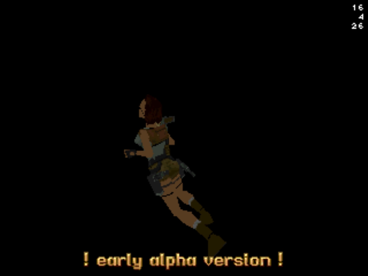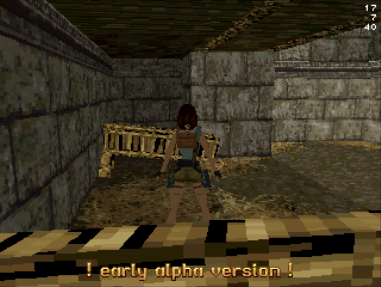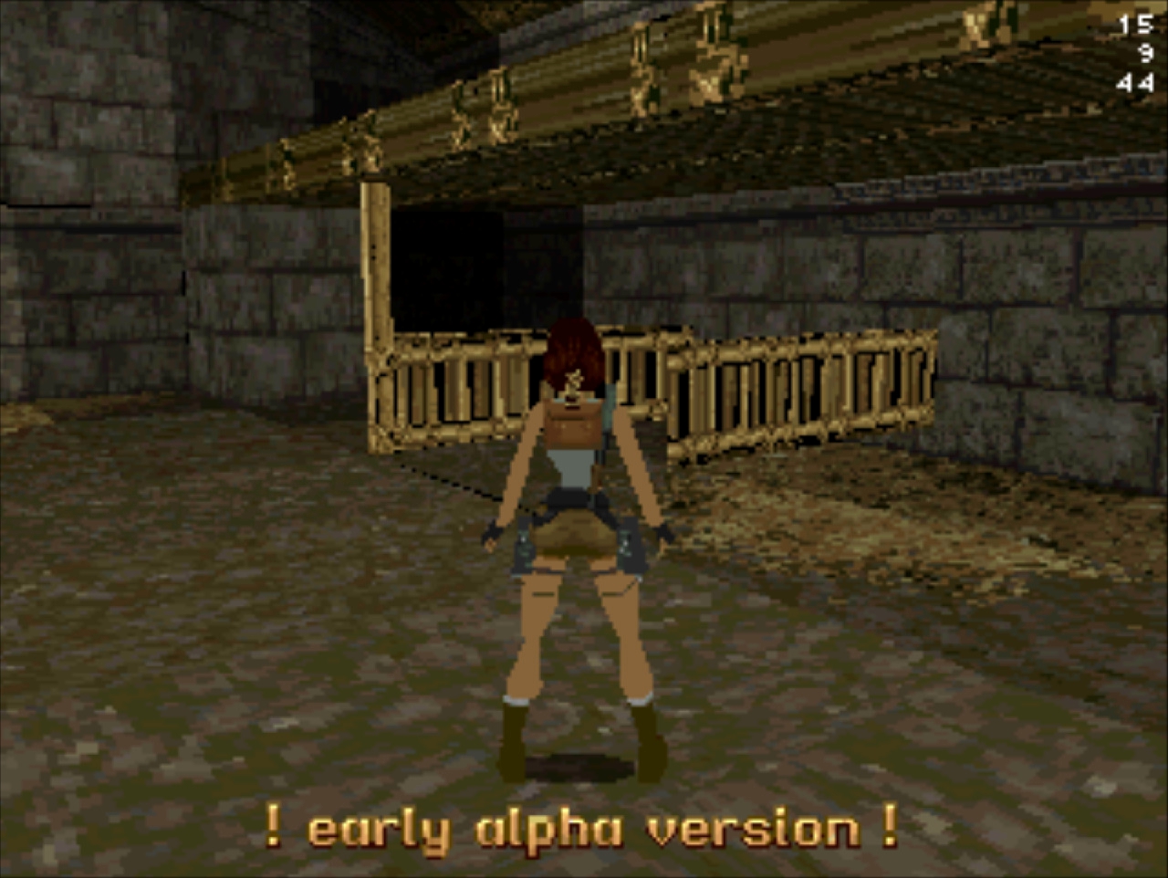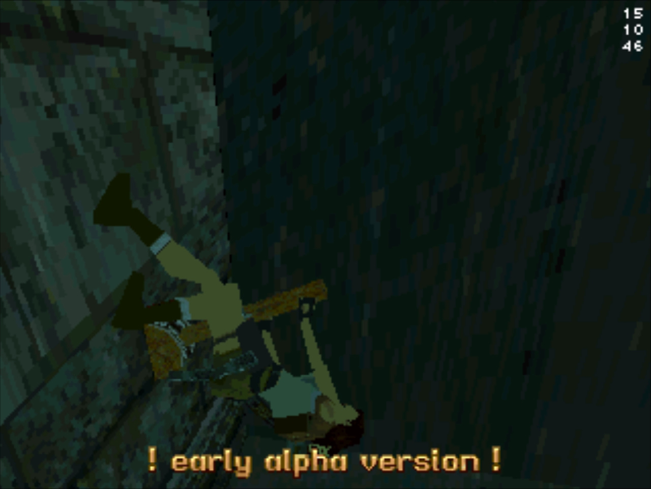 Демо-версия не имеет роликов и меню, стартует сразу же с особняка Лары и... Глядя в пустое окно (эффект свечения и текстуру порезали), частота кадров не поднимается выше 20... Мда, уже понятно с чем имеем дело. Развернувшись можно понять, что и дальность прорисовки тоже порезана, так как в секции с гимнастическими матрасами пианино скрыто в чёрном дымке. А выйдя в холл особняка весь энтузиазм на полный порт игры угасает, так как там игра упала до 8 кадров. Сама Лара также порезана, у неё в модельке не хватает некоторых частей. Что касается воды, то в отличие от GameBoy Advance порта тут эффект прозрачности и воды сохранён.