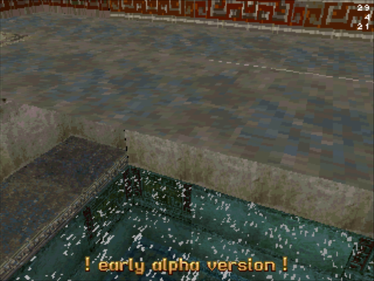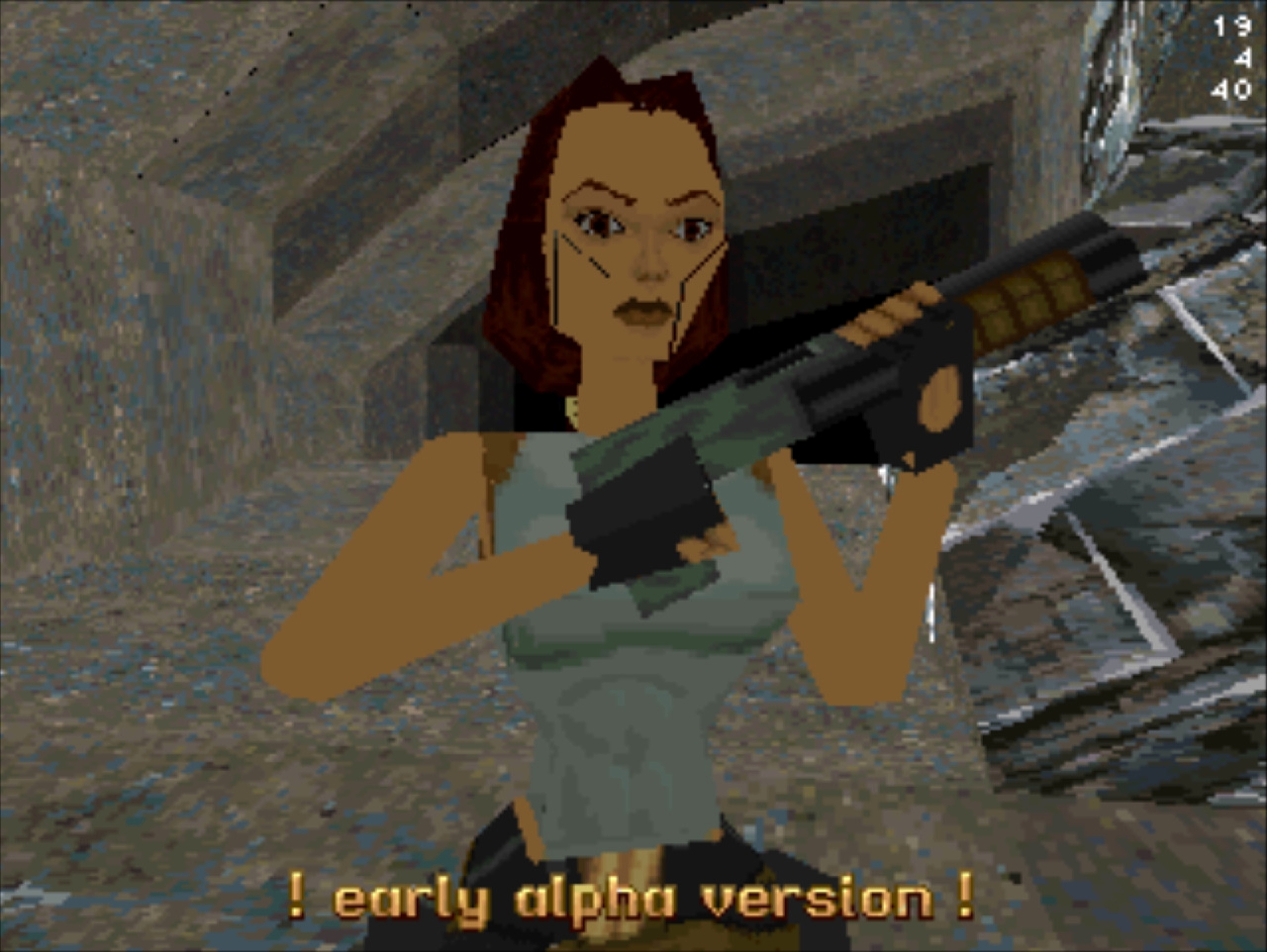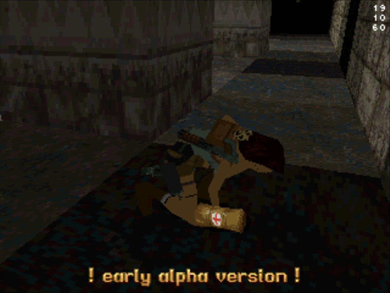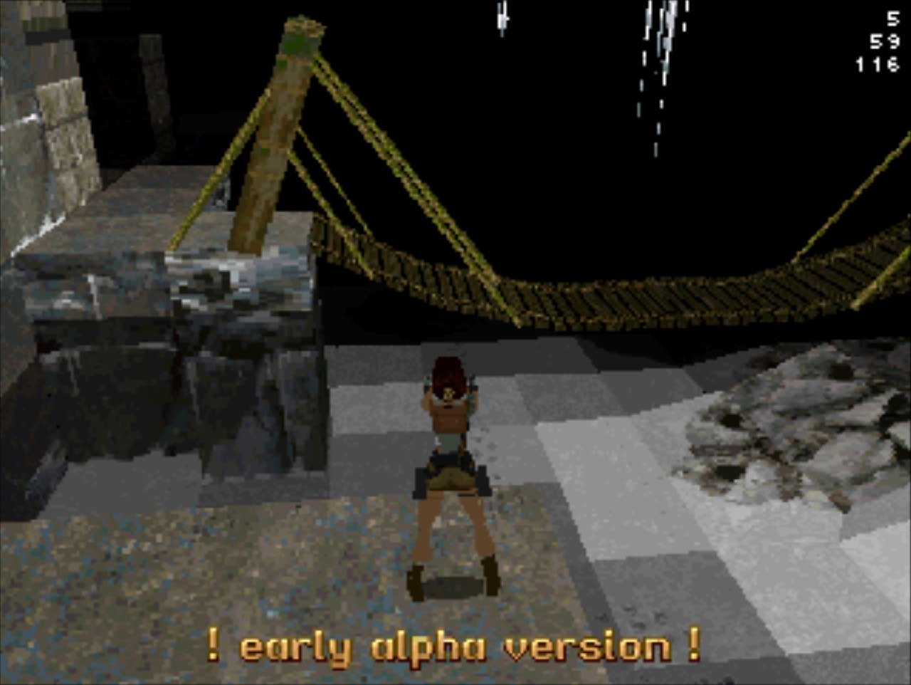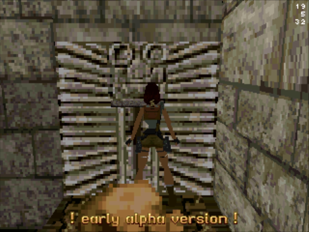 Демо-версия не имеет роликов и меню, стартует сразу же с особняка Лары и... Глядя в пустое окно (эффект свечения и текстуру порезали), частота кадров не поднимается выше 20... Мда, уже понятно с чем имеем дело. Развернувшись можно понять, что и дальность прорисовки тоже порезана, так как в секции с гимнастическими матрасами пианино скрыто в чёрном дымке. А выйдя в холл особняка весь энтузиазм на полный порт игры угасает, так как там игра упала до 8 кадров. Сама Лара также порезана, у неё в модельке не хватает некоторых частей. Что касается воды, то в отличие от GameBoy Advance порта тут эффект прозрачности и воды сохранён.