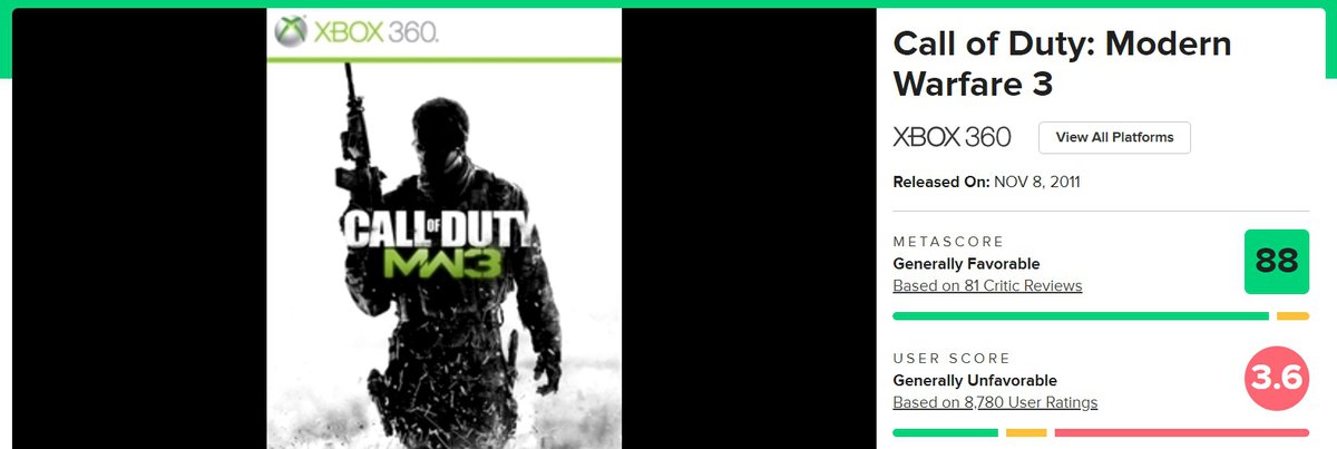 Есть проблема: существует две игры под названием Call of Duty Modern Warfare 3, новая — и оригинальная, вышедшая в 2011 году. Именно оригинальный проект сейчас активно получает отрицательные отзывы.