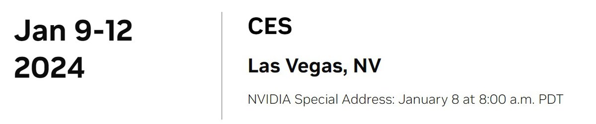 Корпорация Nvidia примет участие в выставке Consumer Electronic Show 2024. Мероприятие состоится в Лас-Вегасе в начале января 2024 года, презентация Nvidia намечена на 8 января, нулевой день выставки.