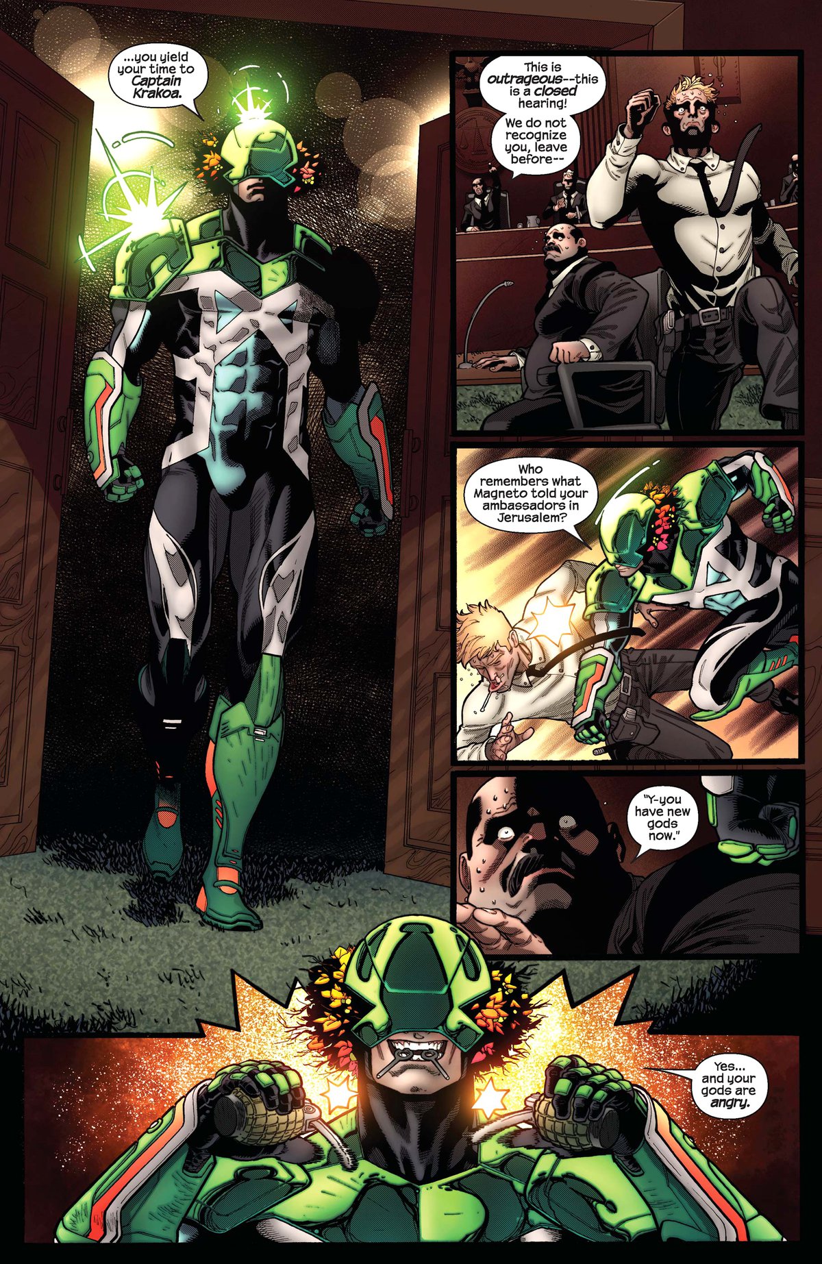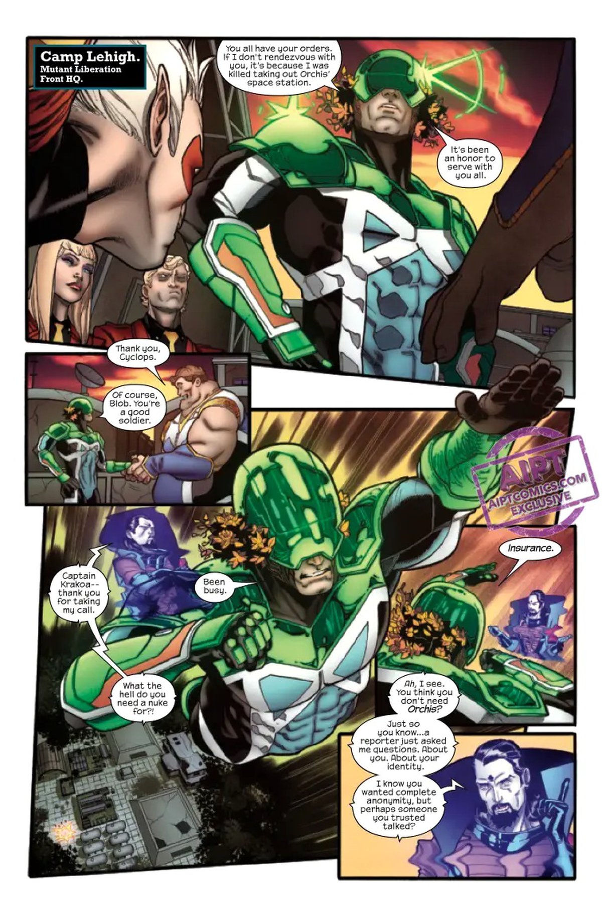 Мутанты в комиксах Марвел сейчас в опале. Их государство уничтожено, многие представители пропали или захвачены в специальные лагеря, лишь некоторые ведут сопротивление из подполья. И одна из причин этого - нападение нераскрытого персонажа в броне Капитана Кракоа на Капитолий в Вашингтоне. Ранее эту броню носил Циклоп, и все люди сразу на него подумали.