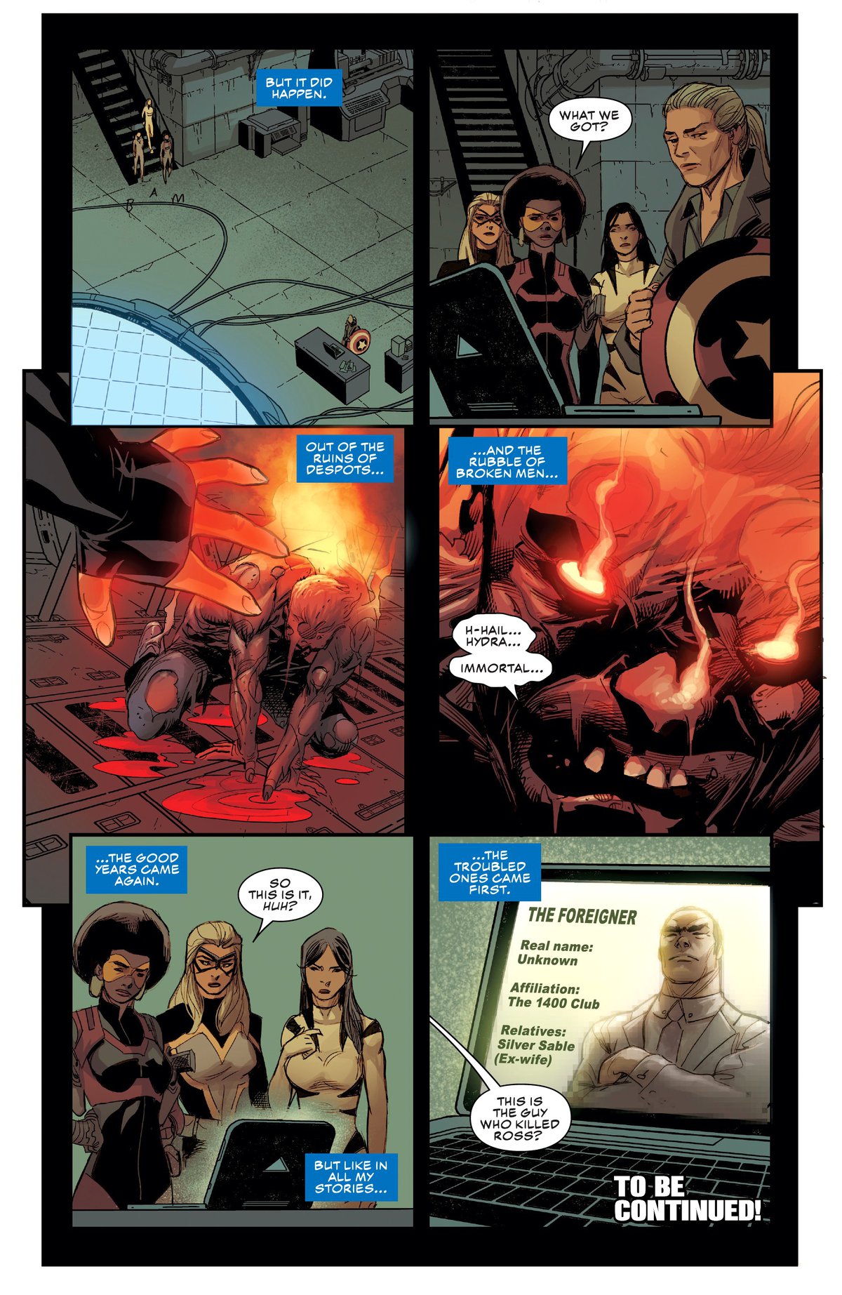 У Марвел есть официальный сайт, и на нём уже опубликована обложка 5-го выпуска от Хавьера Гаррона. На арте мы видим, что Капитан - блондин, с него сбит шлем, и Мстители в шоке.