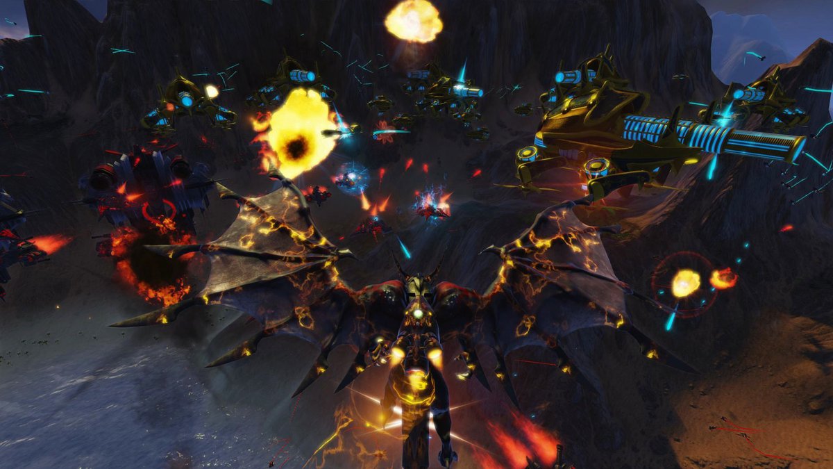 В образе дракона можно управлять войском, однако это настолько неудобно, что даже невозможно. Летучая напасть (наверное, так ее называют твои враги) чувствительна к попаданию ракет с турелей, но достаточно эффективно уничтожает наземную технику и юнитов, в которых при взгляде на него отключается ИИ.
