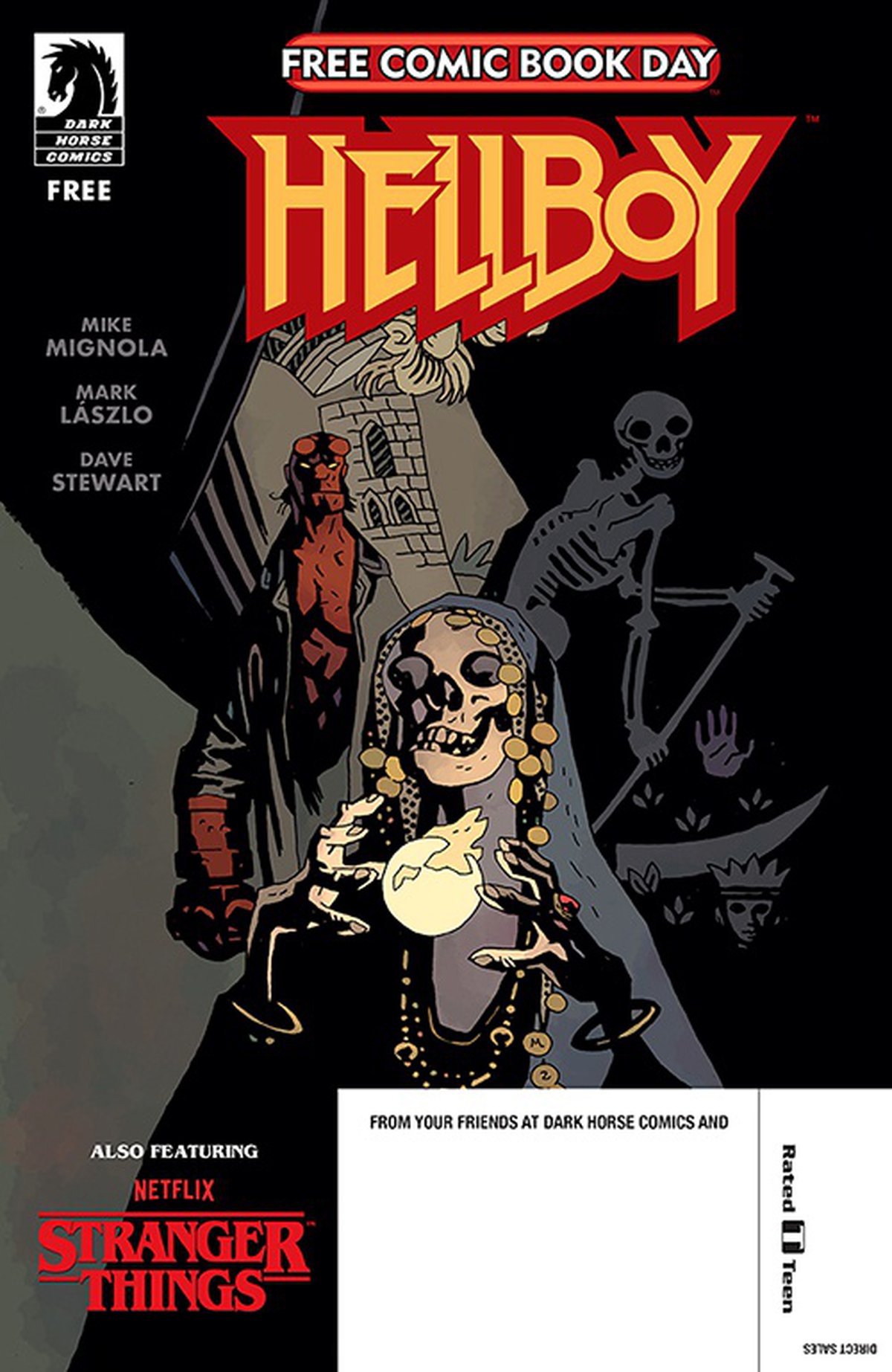 Dark Horse Comics же решила устроить кроссовер Хеллбоя и Очень странных дел в комиксе Hellboy/ Stranger Things. Хеллбой будет расследовать убийство, а Аргайл и Джонатан осуществлять доставку пиццы ночью и попадут в страшную фантастическую историю. Известны авторы: создатель Хеллбоя, Майк Миньола, художник Марк Ласло и колорист Дэйв Стюарт.