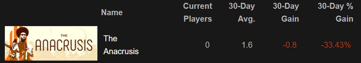 В качестве примера Фалисек приводит данные по The Anacrusis. Если посмотреть в статистику, то окажется, что у Steam-версии игры практически отсутствует аудитория; при этом, утверждает Чет, на самом деле все не так.