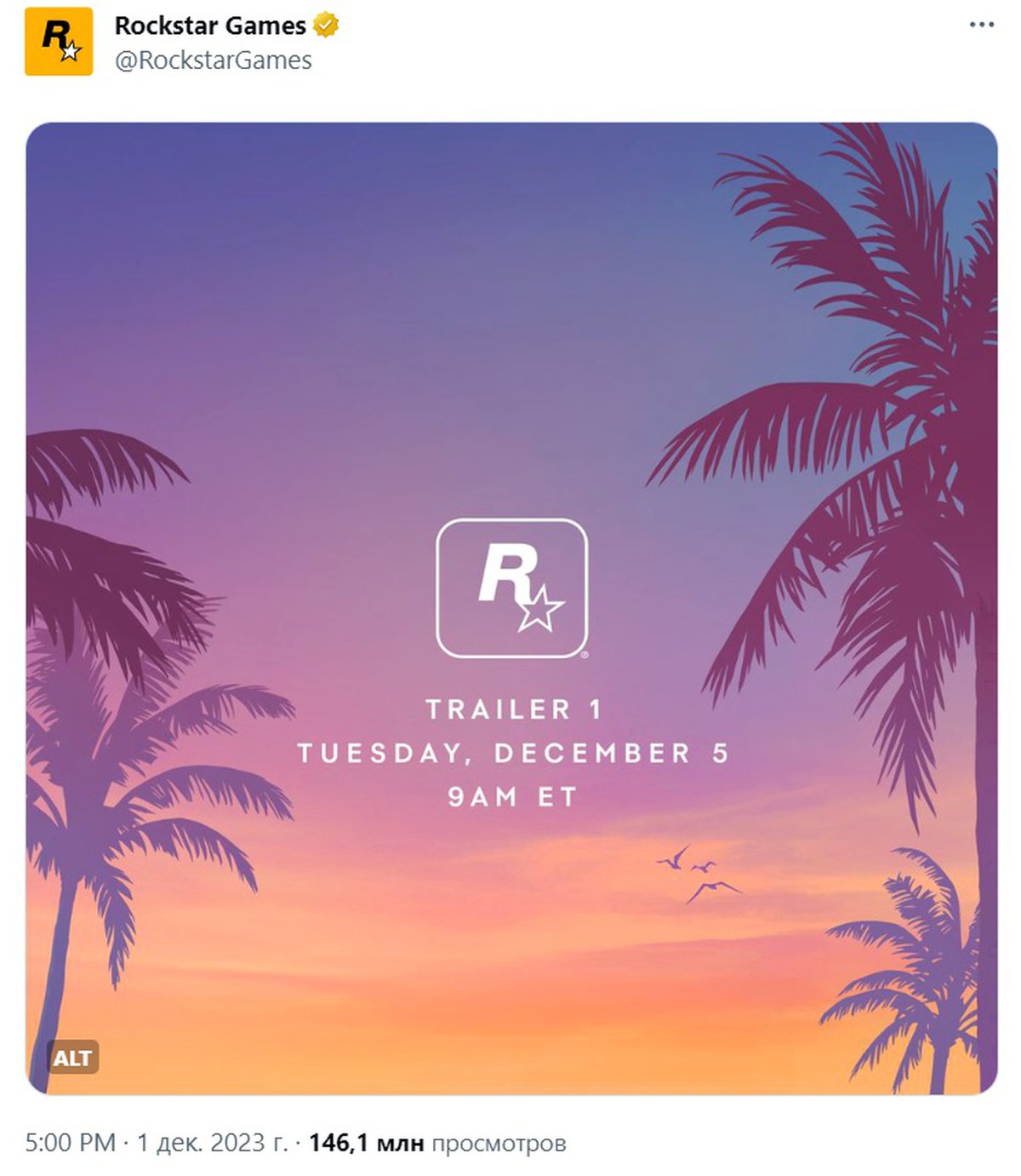Интересный момент: предыдущий рекорд также принадлежал Rockstar Games и тоже был связан с Grand Theft Auto VI. Это был твит о том, что полноценная презентация GTA VI состоится в декабре 2023 года.
