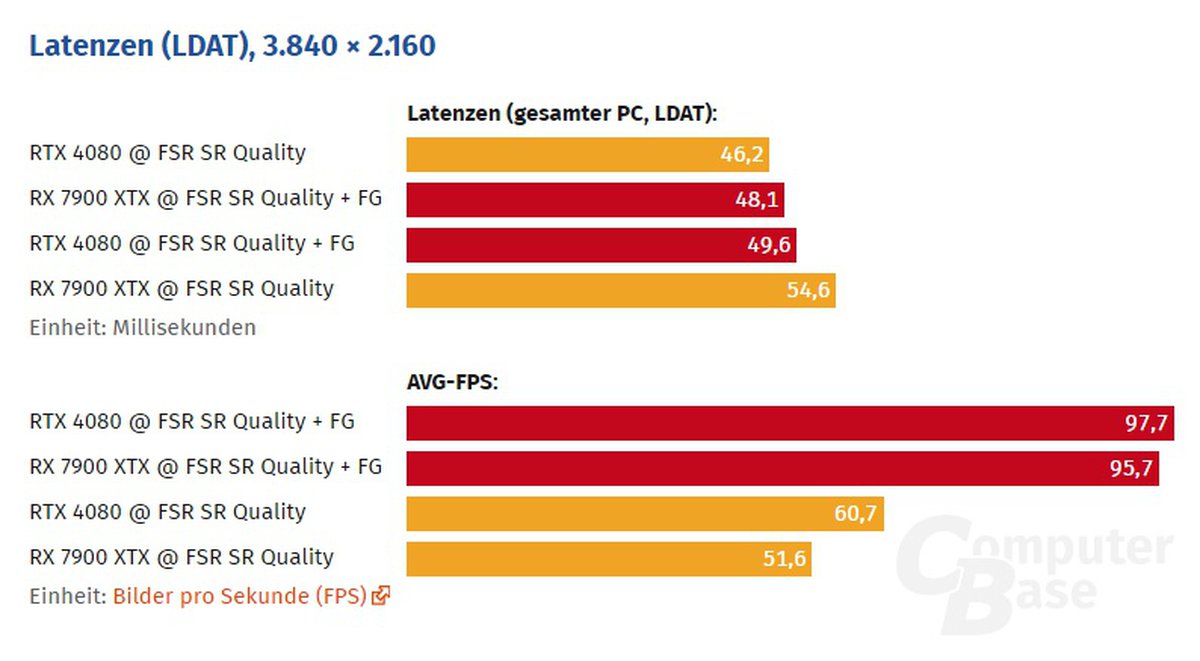 В ходе тестов журналисты пришли к выводу, что обновленная версия FSR 3 отличается более низкой латентностью, чем предыдущие реализации апскейла с генерацией кадров. Активация генерации кадров повышает фреймрейт более чем в полтора раза.