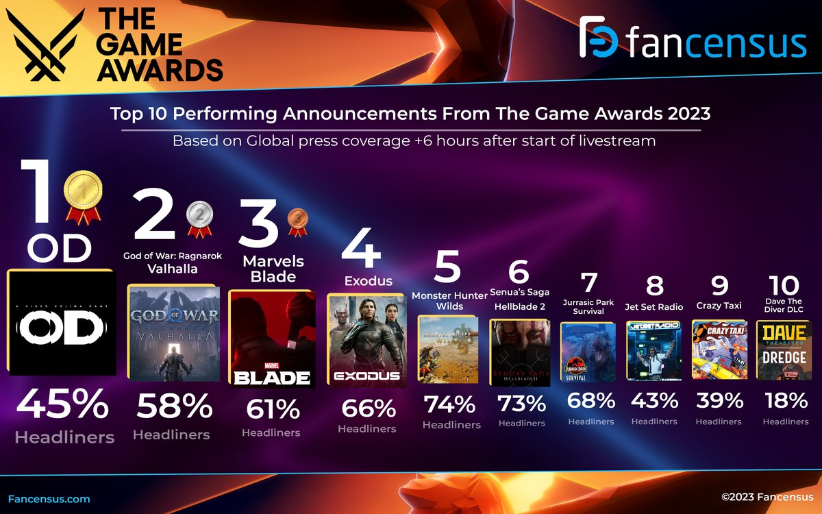 Аналитика: самыми популярными анонсами The Game Awards стали OD, God of War и Blade