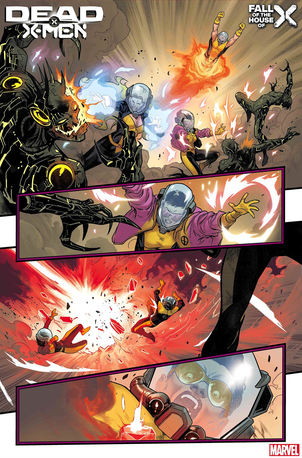 Стив: Что ж, я не думаю, что будет большим спойлером, что Мёртвые Люди-Икс — это пять Людей-Икс, убитых Нимродом на Hellfire Gala, через несколько мгновений после дебюта. На первой обложке Пере Переза мы показали их скромно, но с тех пор, как вышел ваншот Hellfire Gala 2023, мы знали, что читательский спрос и ожидание увидеть этих пятерых вместе в действии были очень сильными.