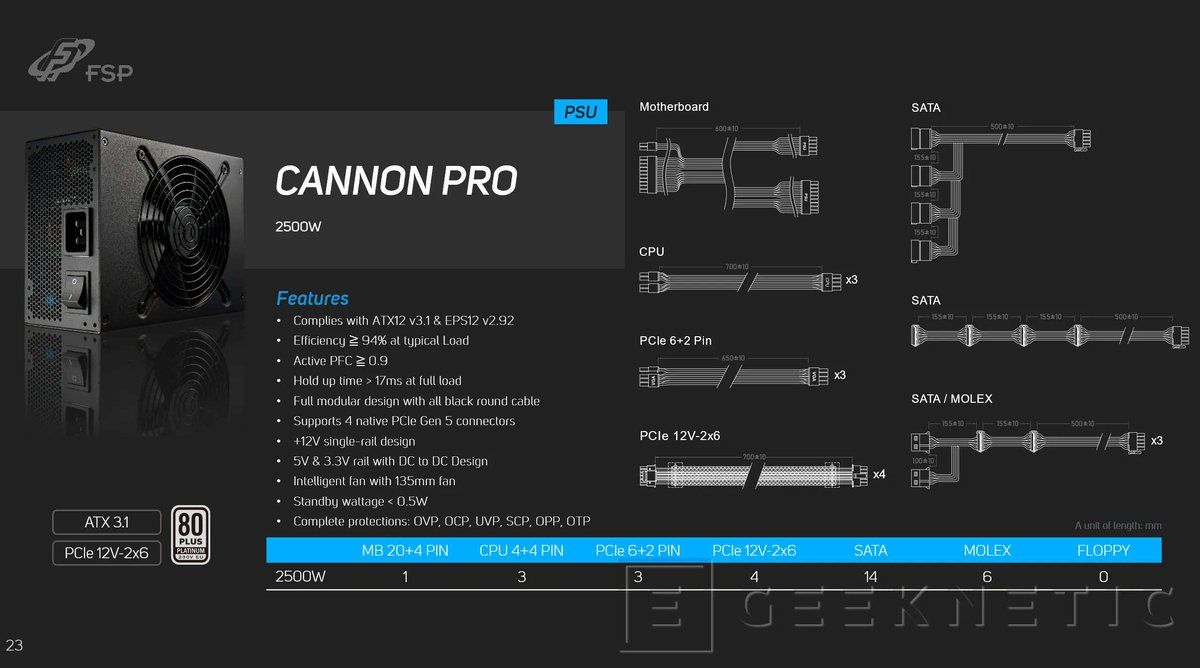 Компания FSP готовится выпустить блок питания для энтузиастов, использующих сразу несколько видеокарт. Ожидается, что блок питания Cannon Pro 2500W сможет снабдить энергией сразу четыре топовых карты и еще останется на остальные комплектующие.