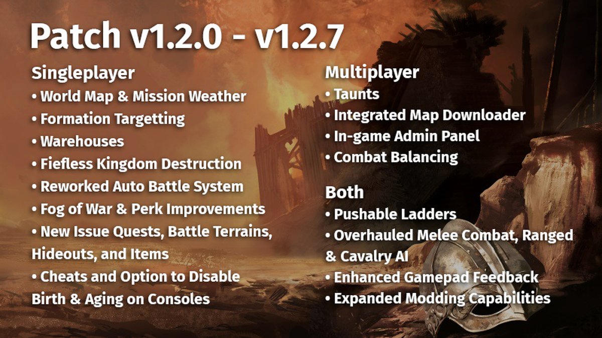 Кроме того, обновление 1.27 исправляет множество ошибок, включая критические, и дополнительно оптимизирует Mount and Blade 2 Bannerlord на всех платформах.