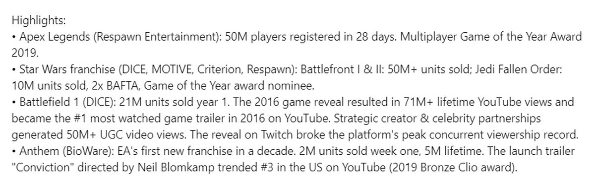 Продажи Anthem — вероятно, самой неудачной игры BioWare — могли достичь 5 миллионов копий. Такая цифра приводится в профиле Александра Скрябина, бывшего директора EA по работе с социальными медиа.