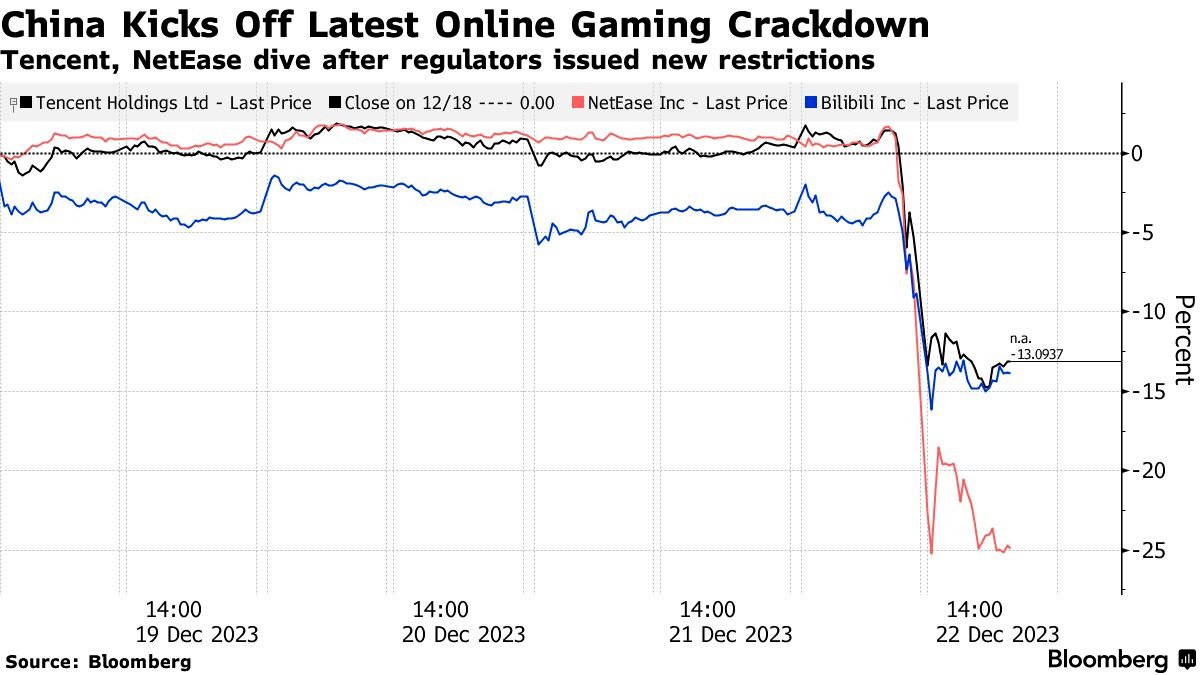 Возможность таких ограничений стала неожиданностью для китайского рынка. Капитализация ключевых участников рынка немедленно упала; например, стоимость акций холдинга Tencent снизилась на 16%, акции NetEase упали примерно на 28%.