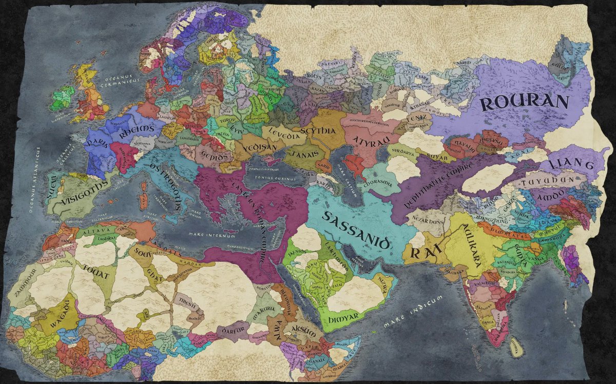 Следующая закладка называется Ануширван по названию древнеиранской династии. Хосров I взошёл на престол в 531 году, но положение у державы не очень. Белые гунны что-то замышляют, у них вождь сменился, "вечный мир" с Византией хрупок, знатный род Ашина планирует восстание и только появления тюркского каганата тут не хватало.