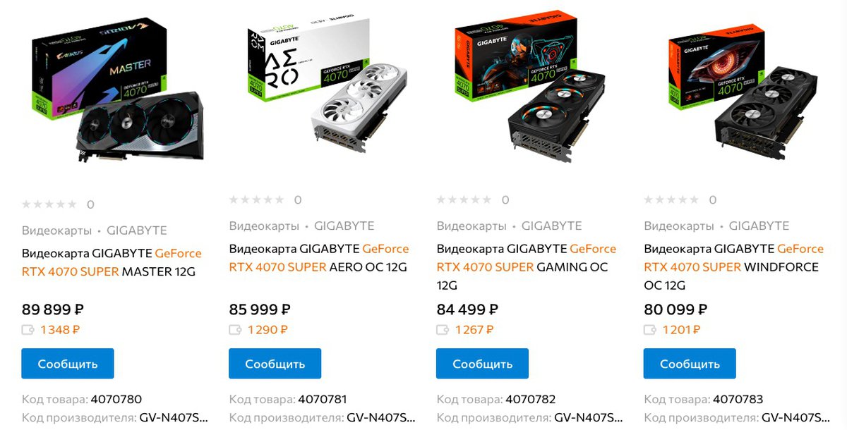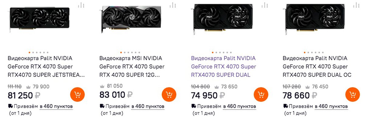 GeForce RTX 4070 Super в России продают за 72-90 тысяч рублей
