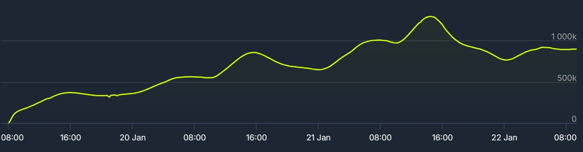 Онлайн игры в Steam тоже постоянно увеличивается. Вечером 21 января Palworld достигла отметки в 1.291 миллиона одновременно активных игроков.