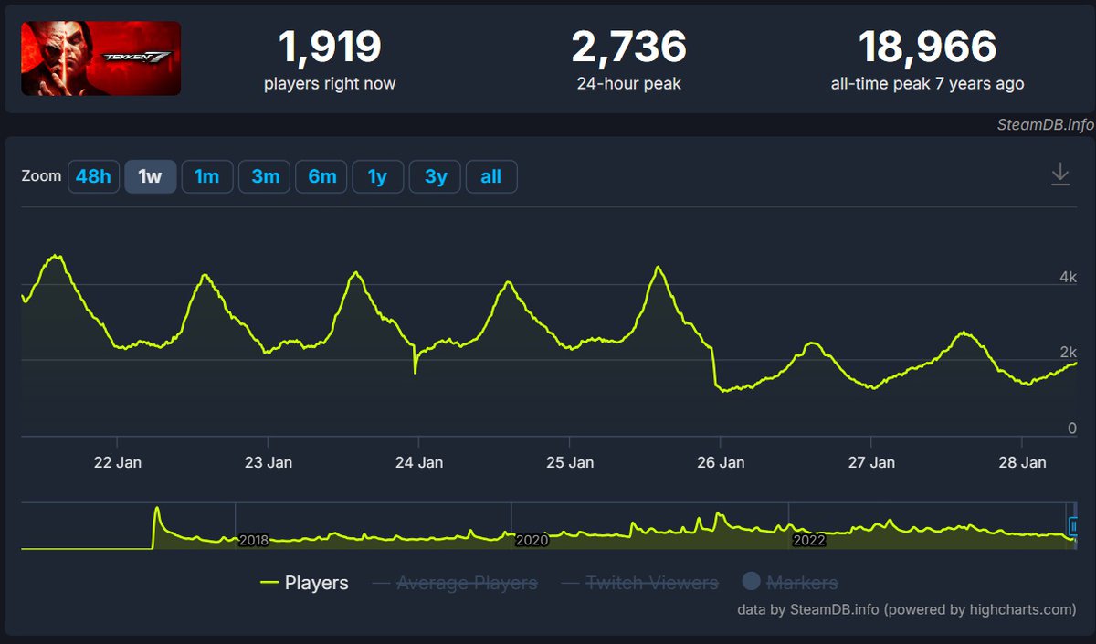 Прежде рекорд принадлежал седьмой части серии. Tekken 7, вышедшая в 2017 году, привлекала в Steam до 18966 человек одновременно, это примерно в два с половиной раза меньше результата новой игры.