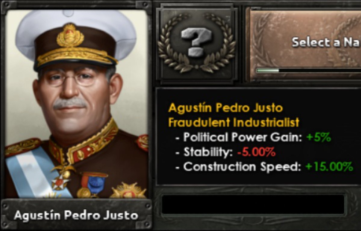 В начале игры Аргентина будет с нейтральной идеологией и президентом Агустином Педро Хусто.