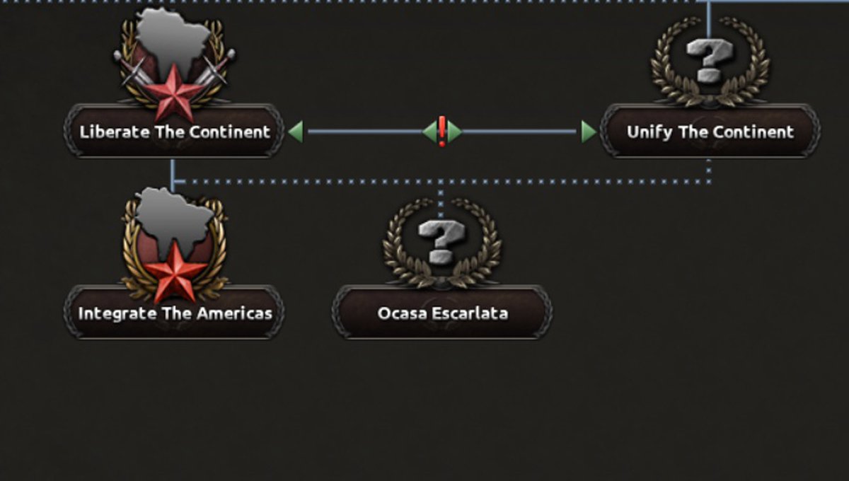 Ветка внешней политики даст выбор между получением целей войны со всеми некоммунистическими государствами Южной Америки или приглашению любой коммунистической страны континента к альянсу игрока. В конце будет выбор: присоединить завоёванные территории к своей стране или провести операцию Ocaso Escarlata, обрушив Алый закат на всех, кто выступает против.