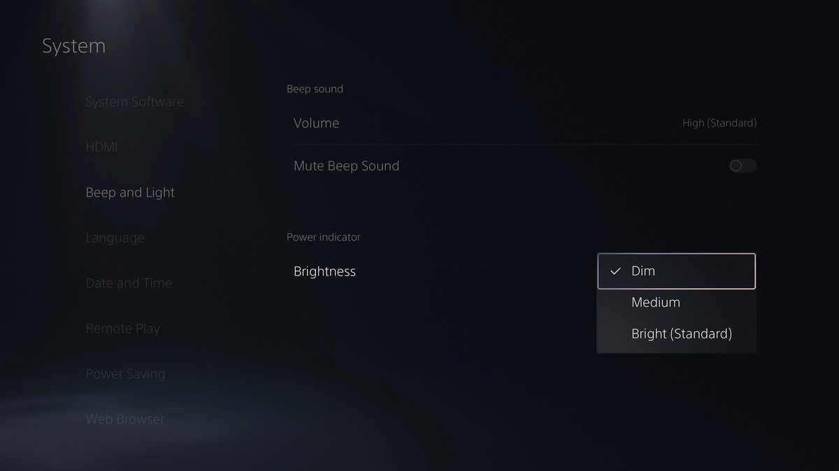 Также новая прошивка позволяет менять яркость индикатора питания PlayStation 5. Помимо стандартного уровня прошивка добавит еще два: средний и тусклый.