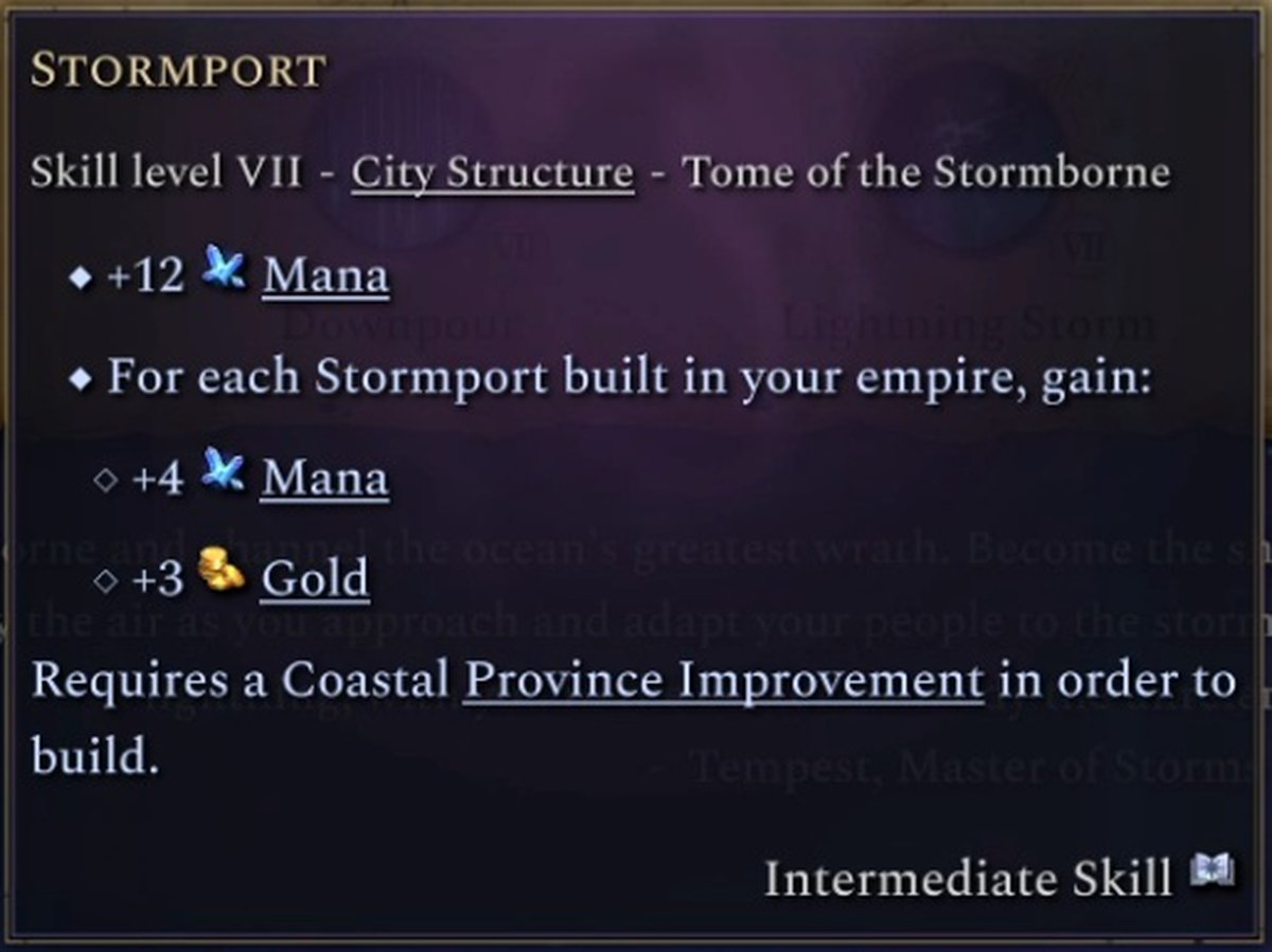 А "Штормовой порт" (Stormport) это исследование, оно позволит строить порт бурерожденных в городах. Сам он приносит 12 маны, а за каждый другой такой порт даст ещё +4 маны и +3 золота.