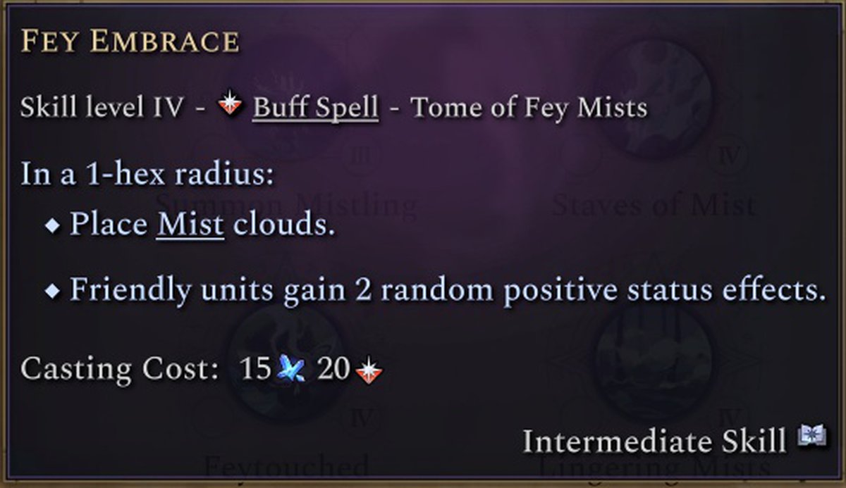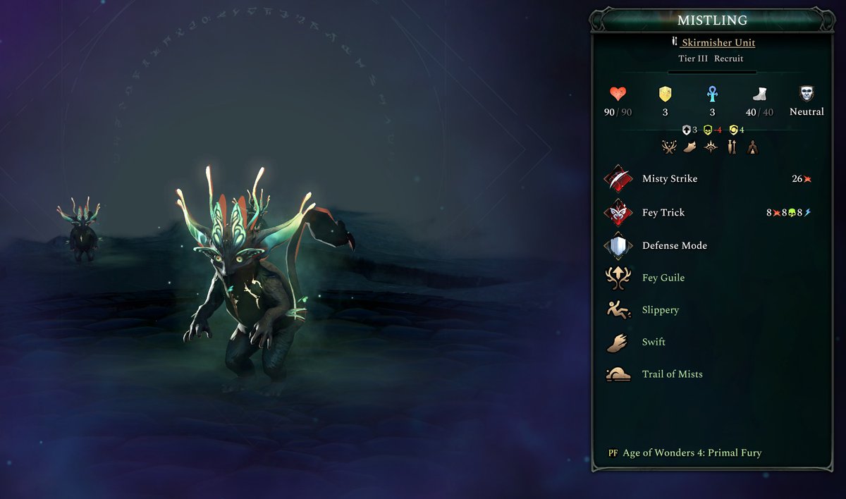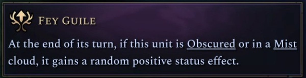 Кроме того, появится эффект "Коварство фей" (Fey Guile). Если юнит закончит ход в тумане, лесу, кустах или чём-то другом скрывающим, то получит один случайный позитивный эффект. Эту способность также получат все феи в игре.