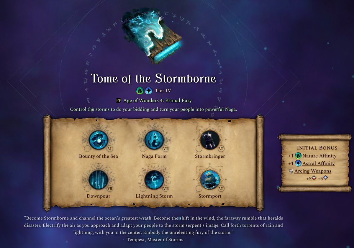 Книга бурерожденного по описанию должна позволить управлять бурей и превратить народ игрока в нагов.