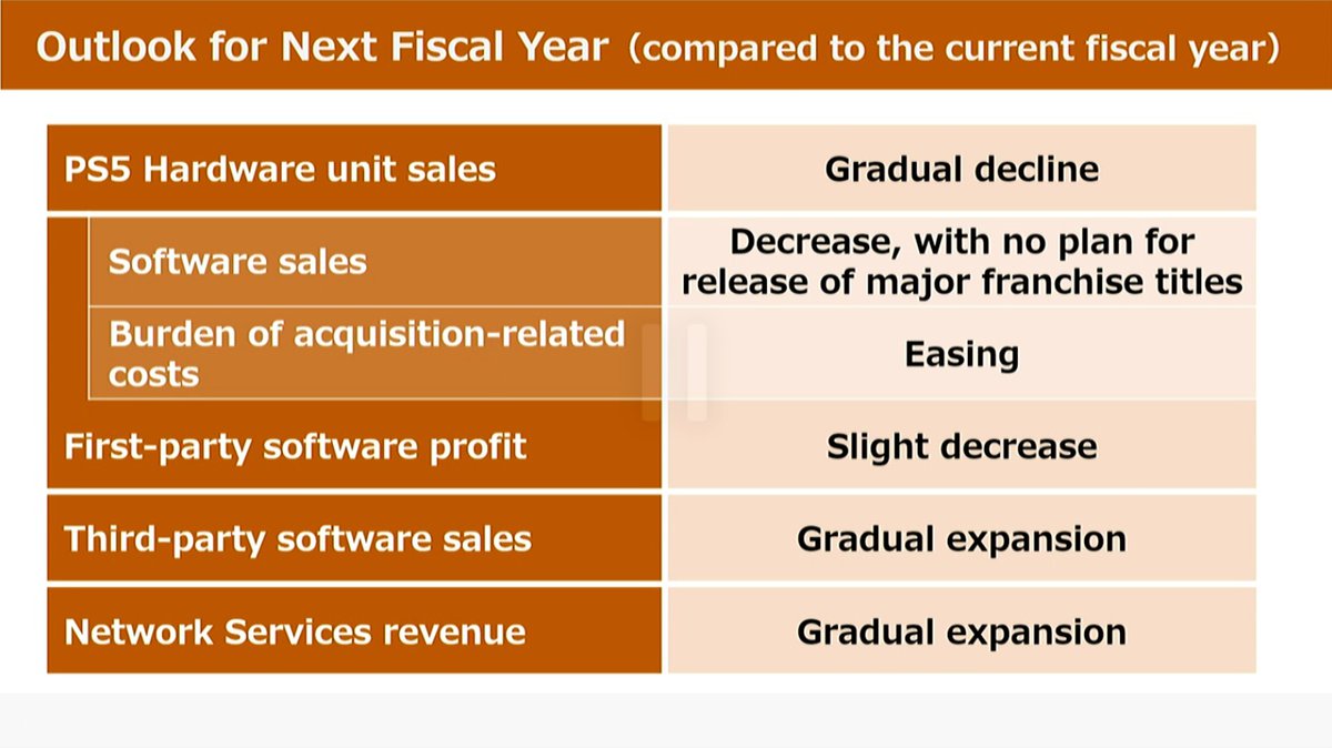 Хотя в разработке находятся крупные проекты, в следующем финансовом году мы не планируем выпуск новых игр по существующим франшизам; речь идет о проектах вроде Spider-Man 2 или God of War Ragnarok.