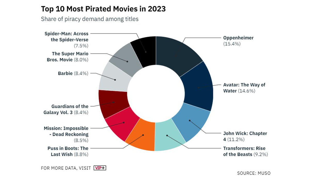 Аналитика: «Оппенгеймер» и «Аватар 2» — самые спираченные фильмы 2023 года