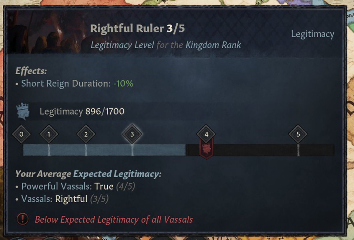 Теперь о легитимности. Это такой сложный показатель, который определяет, подходит ли человек для титула, которым владеет.