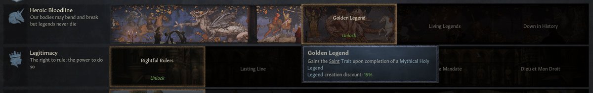 Святые легенды нужны чтобы получать благочестие и даже причислиться к лику святых. Правда, для этого надо будет открыть специальное наследие династии.