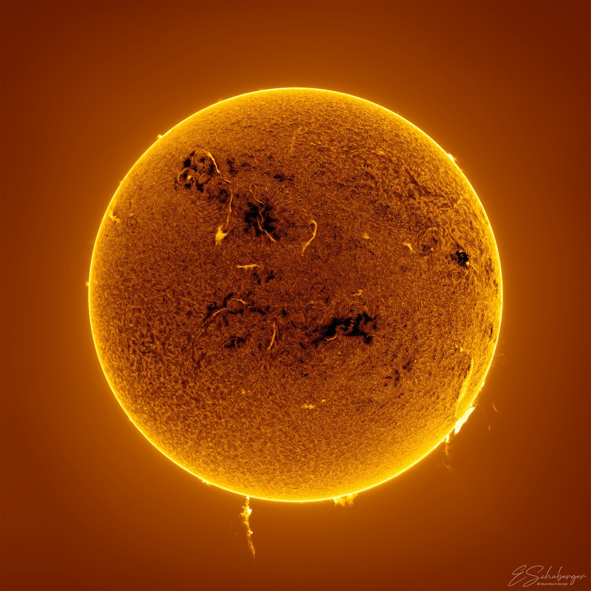 Аргентинский астроном Эдуардо Шабергер Пупо заснял необычный выброс солнечной плазмы. Как правило, такие выбросы происходят неподалеку от экватора, где находится больше всего пятен; выброс, замеченный Эдуардо, случился в районе южного полюса звезды.