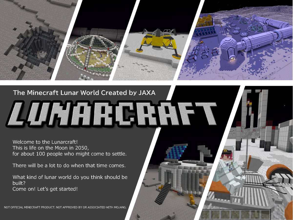 JAXA, космическое агентство Японии попыталось подстегнуть интерес к космосу с помощью Minecraft. Агентство выпустило Lunarcraft, специальный мир для Minecraft, посвященный исследованию Луны.