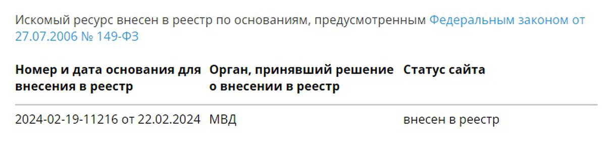 Домен добавили в реестр по запросу Министерства внутренних дел.