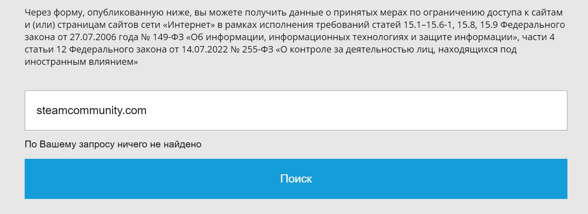 В то же время домен steamcommunity.com пока отсутствует в базе универсального сервиса Роскомнадзора, с помощью которого можно проверить блокировку ресурсов на территории России.