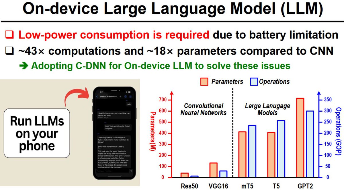Инженеры компании Samsung рассказали о создании чипа C-Transformer, предназначенного для работы с большими языковыми моделями. C-Transformer — чип с ультранизким энергопотреблением и небольшой производительностью.