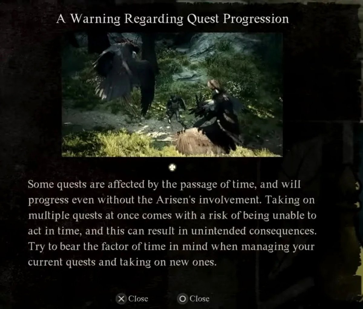 Часть заданий в Dragon's Dogma 2 можно провалить, слишком затянув с их прохождением. Об этом, заметили фанаты, сообщается в небольшом предупреждающем окне: его заметили в геймплейных роликах Dragon's Dogma 2.